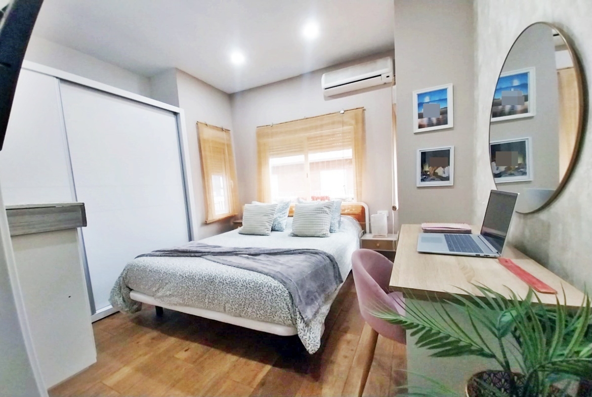 Esta encantadora casa de 2 plantas con entradas independientes, reformada, se divide 2 viviendas, con 165 metros construidos y 160 metros útiles, orientación SUR, 5 dormitorios, 2 baños, 4 aires, 2 cocinas equipadas, terraza, patio.