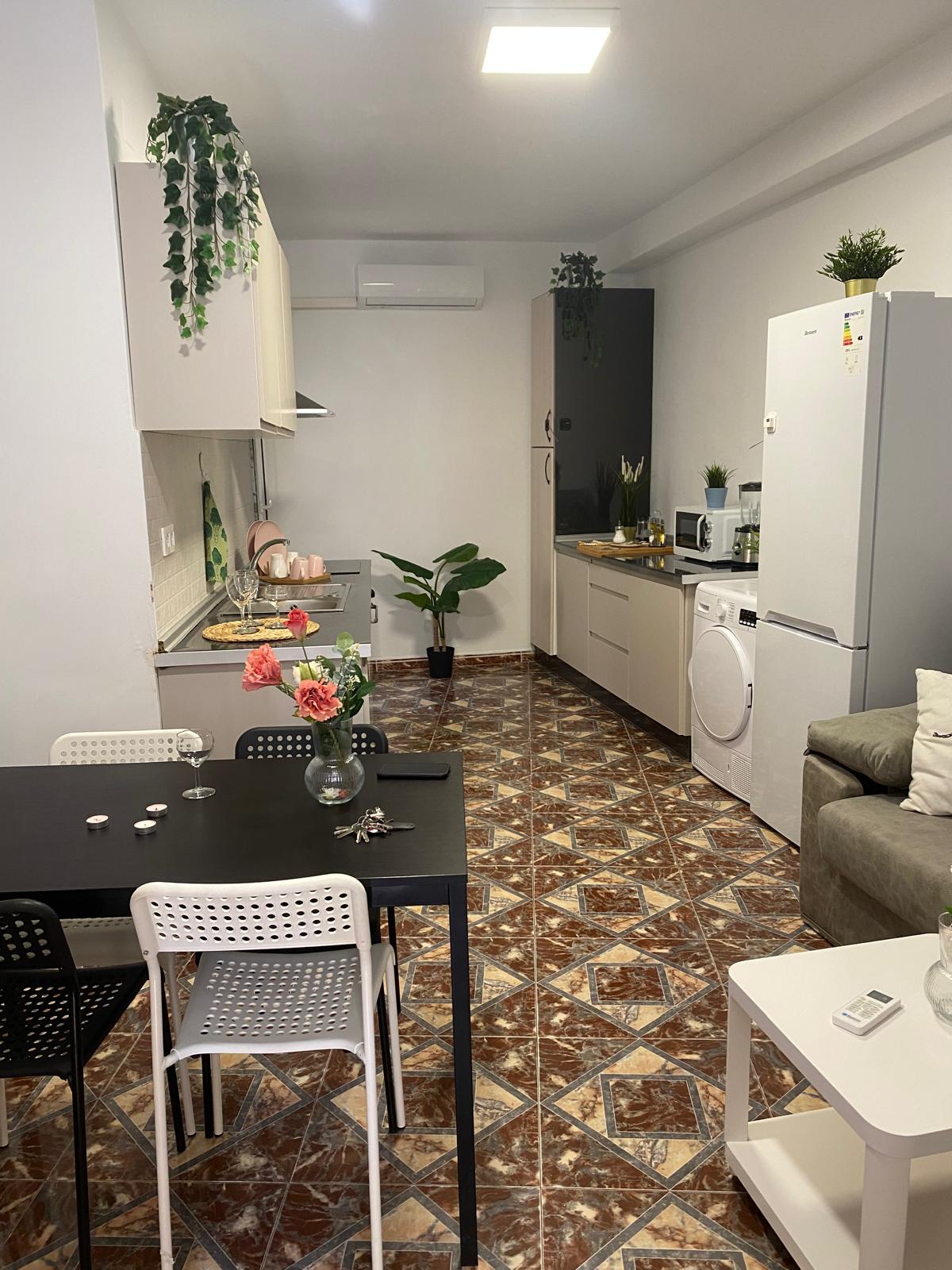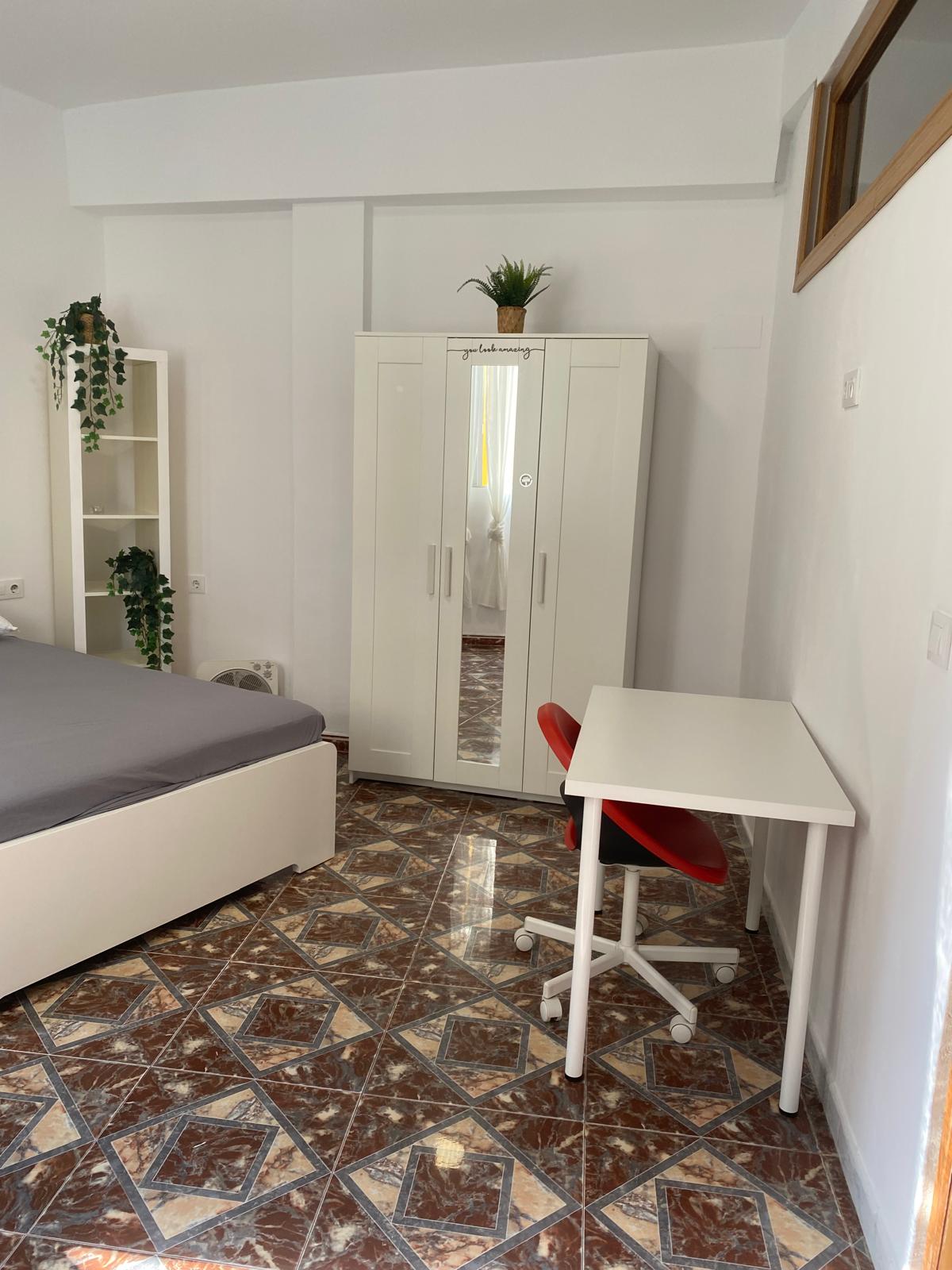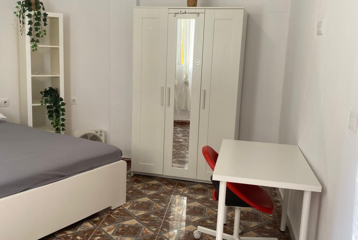 Habitación con cama de 140cm y llave, para chico estudiante hasta JUNIO, en 2 planta SIN ascensor, AIRE, cocina equipada: horno, lavadora, secadora, microondas – abierta salón y baño.