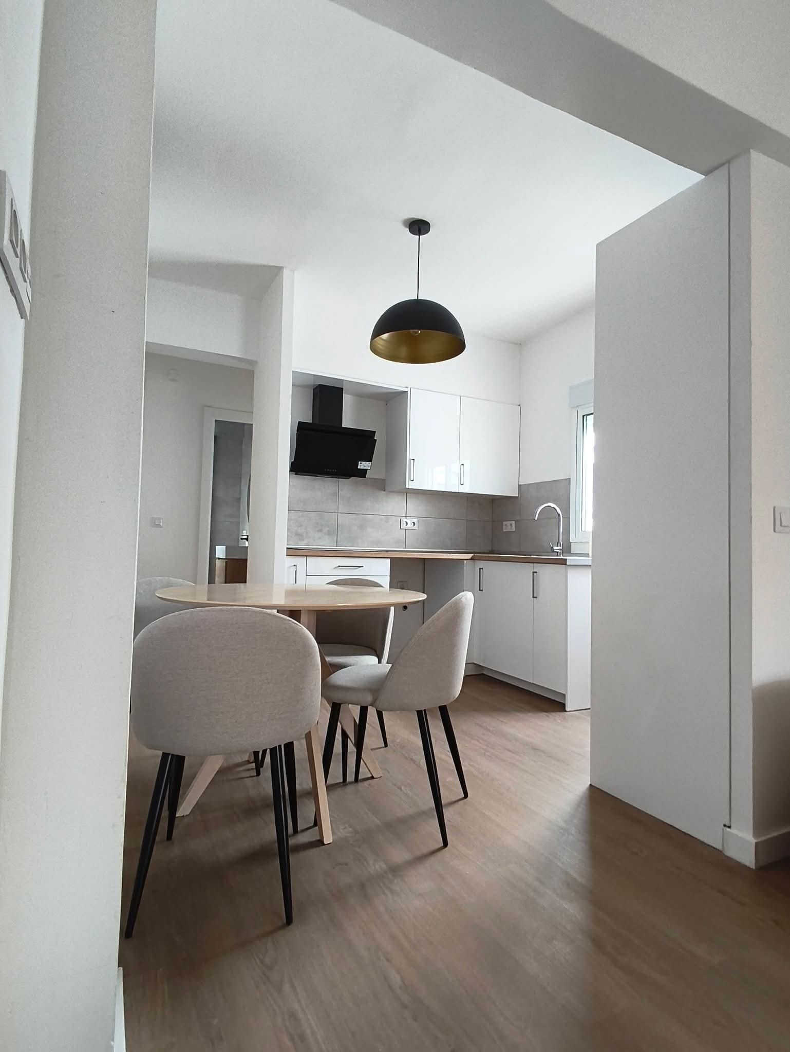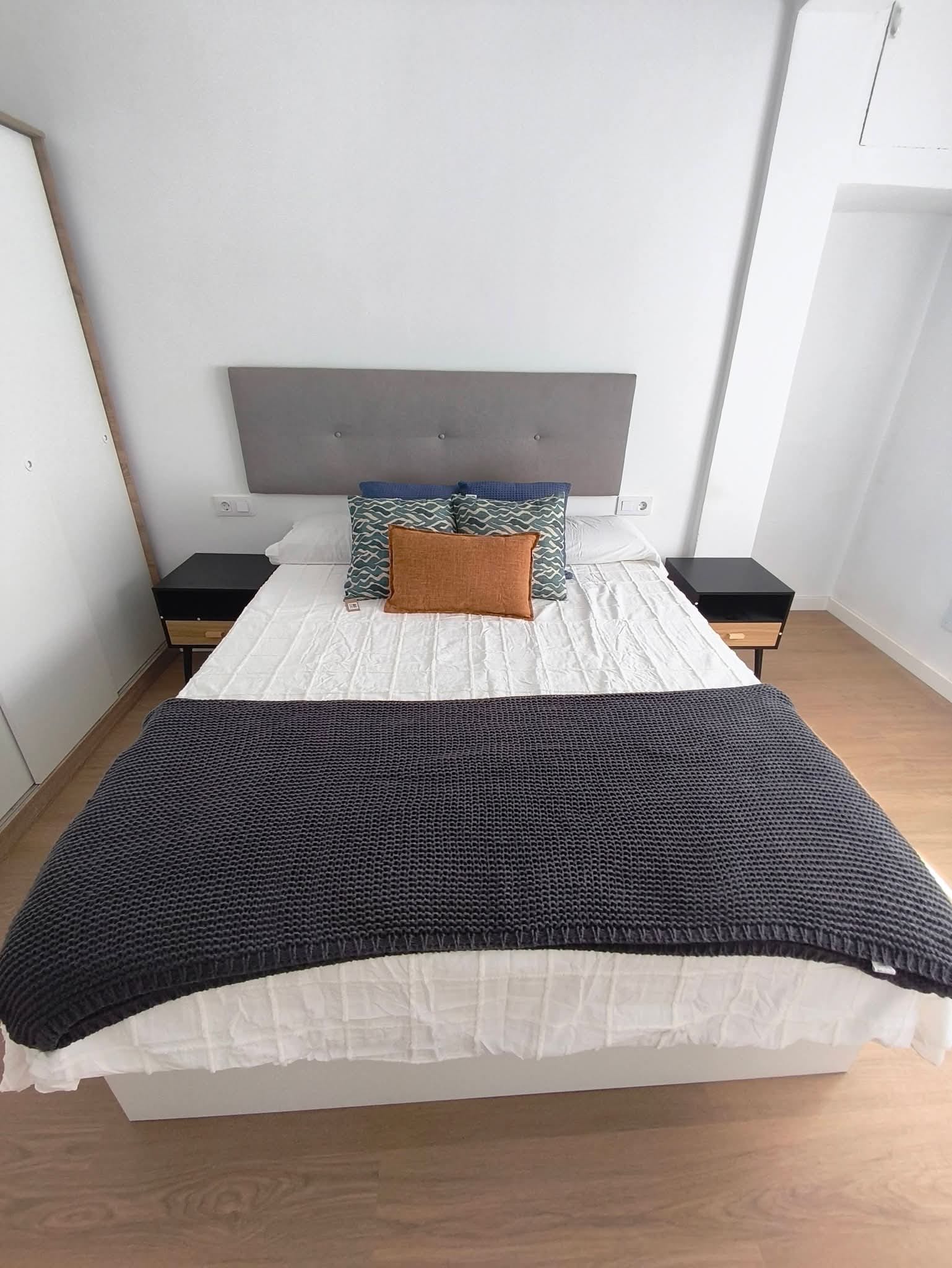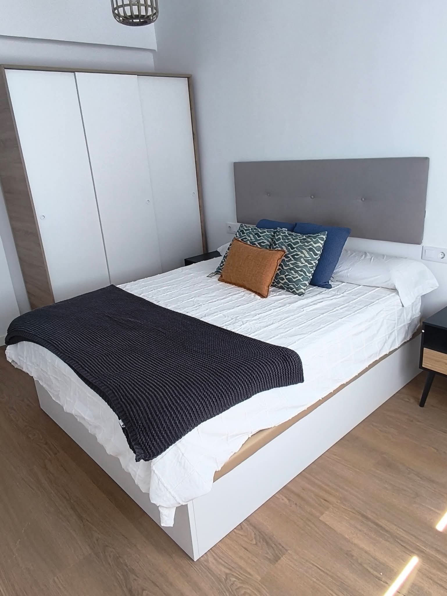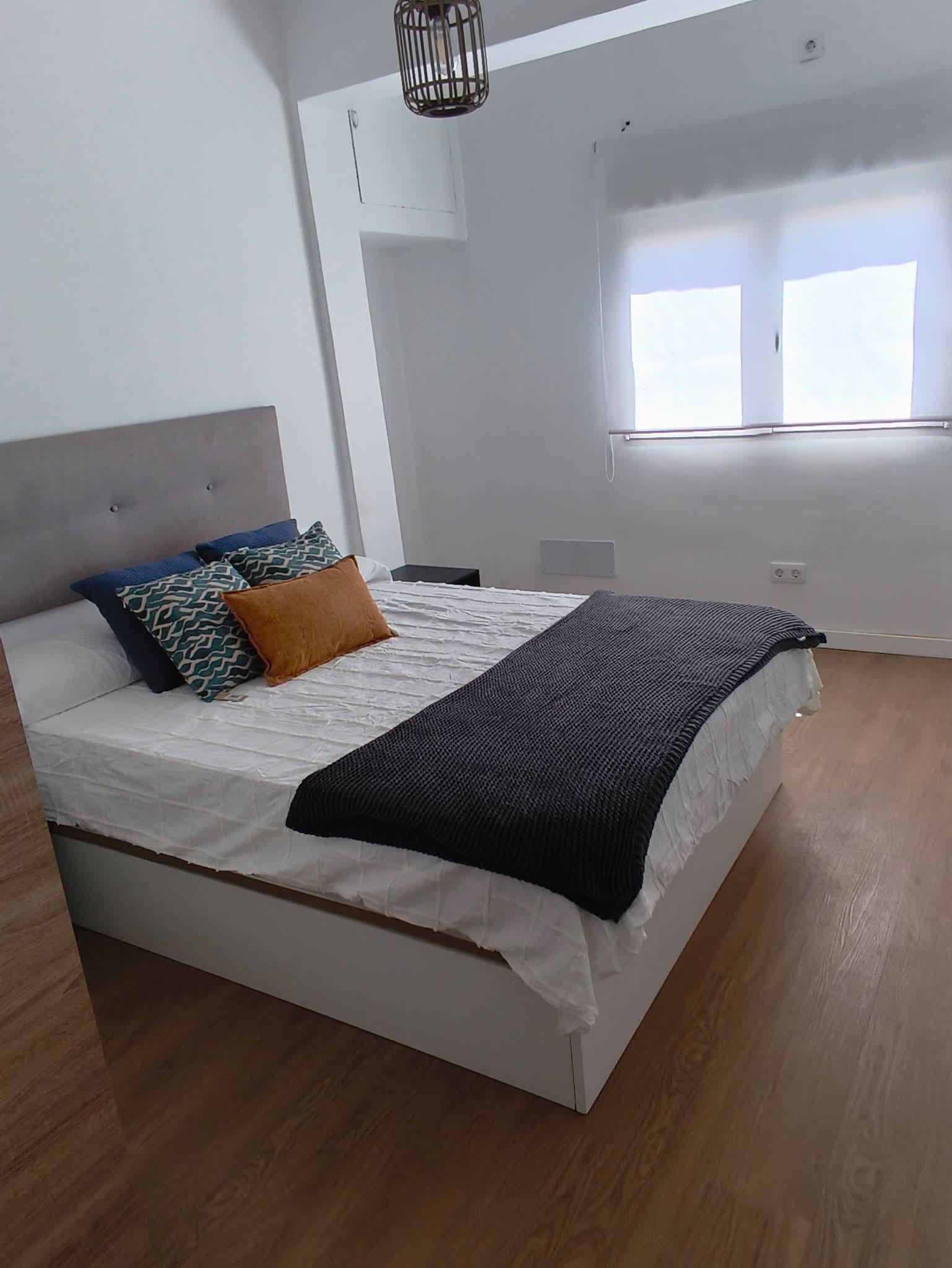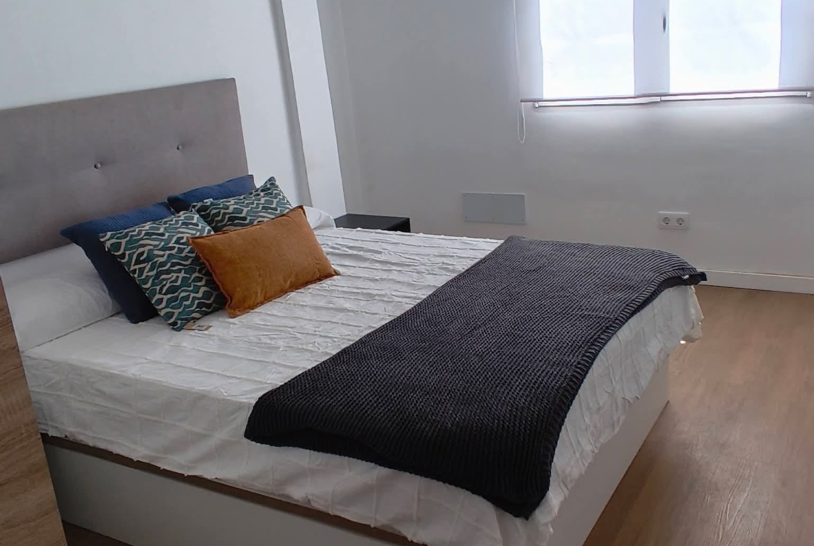 A. Habitación con cama de 135cm, escritorio y armario, piso REFORMADO, en 4 planta SIN ascensor, de 4 dormitorios, 2 baños completos, cocina y salón.