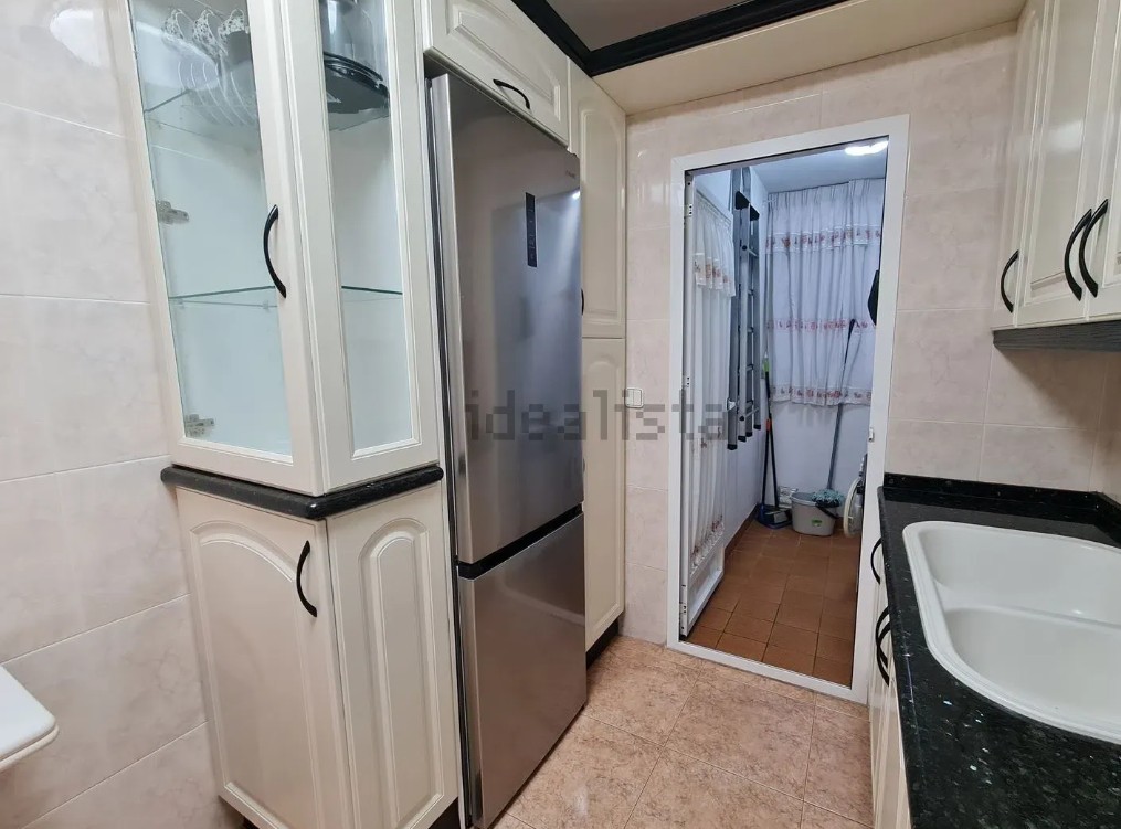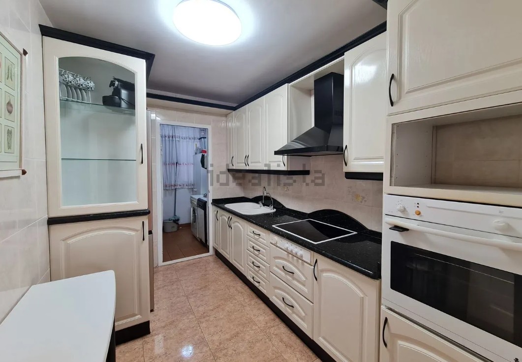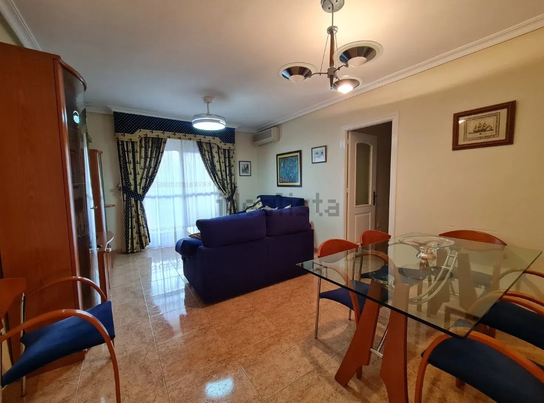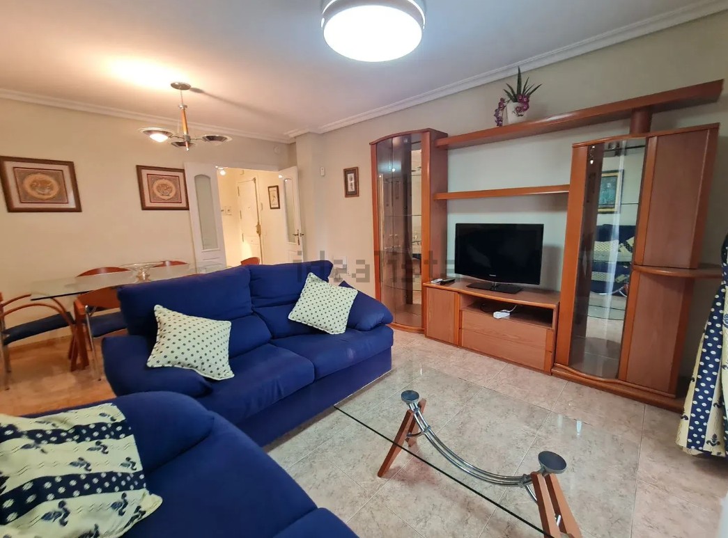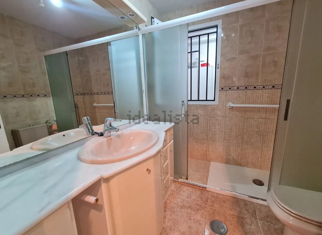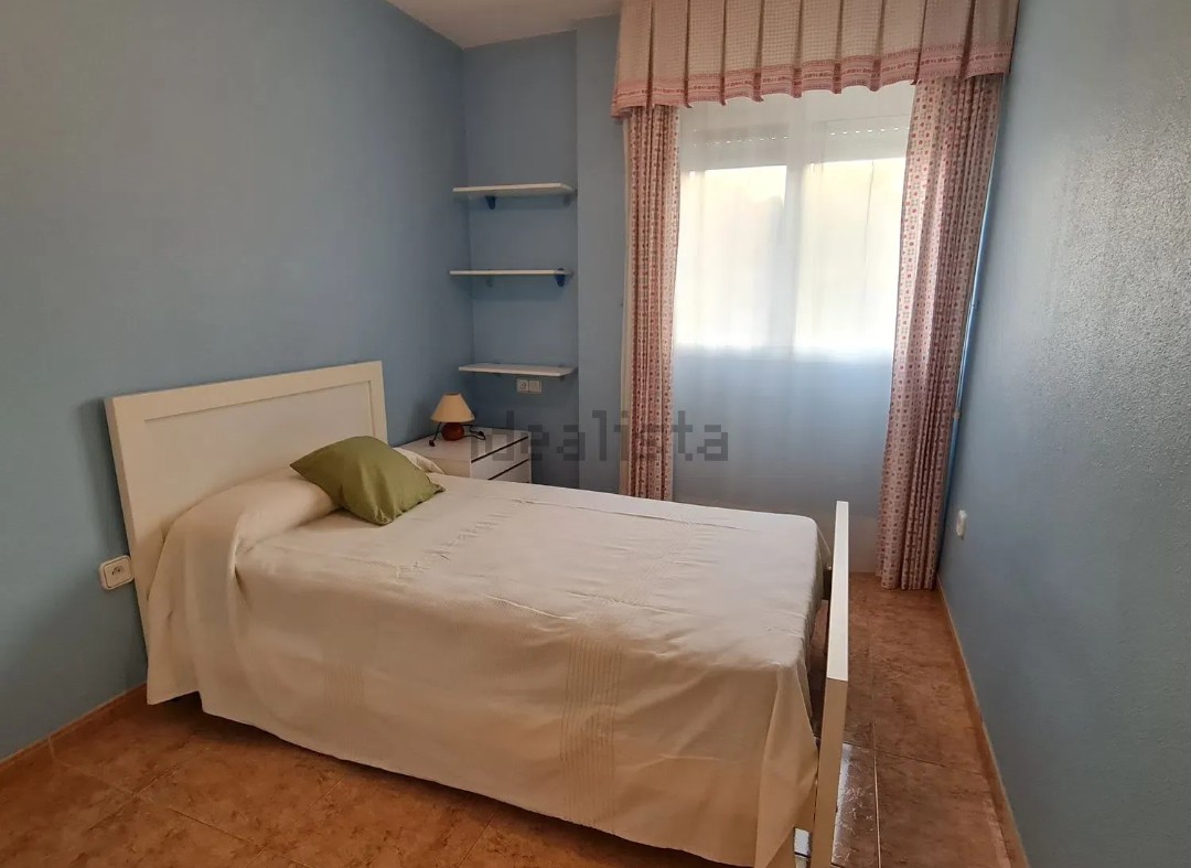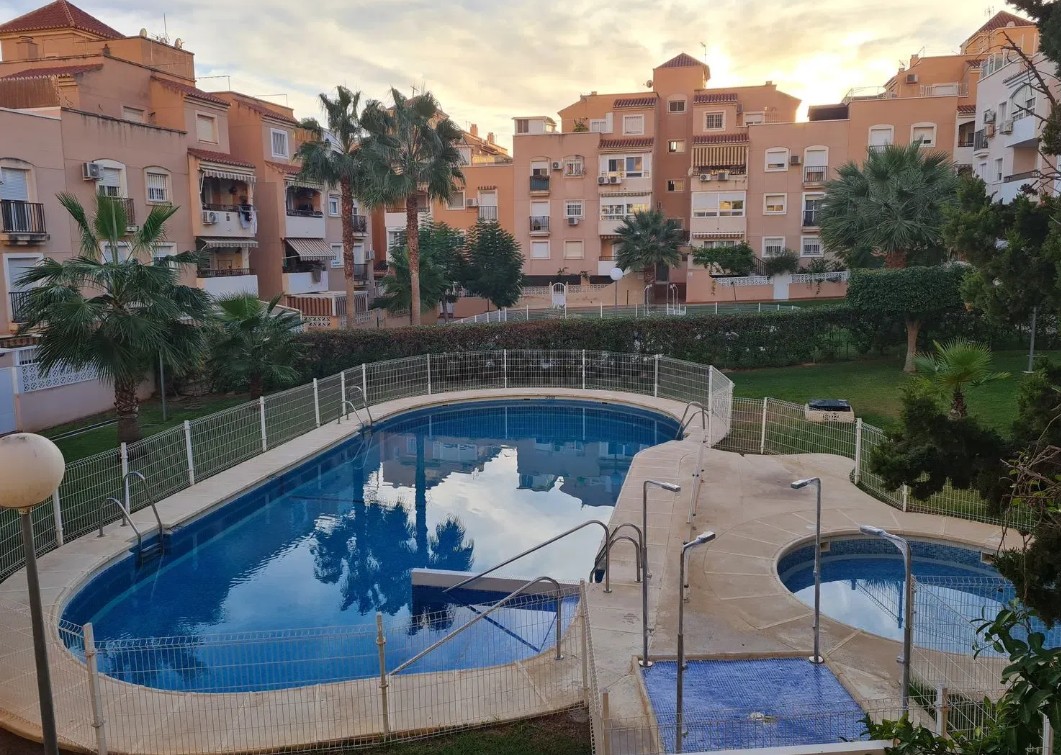 A. Piso en 2 planta con ascensor, de unos 80 metros, oeste, de 3 dormitorios, 1 baño con plato ducha y aseo, cocina independiente con lavadero, salón comedor, plaza de garaje, trastero, jardín y dos piscina.