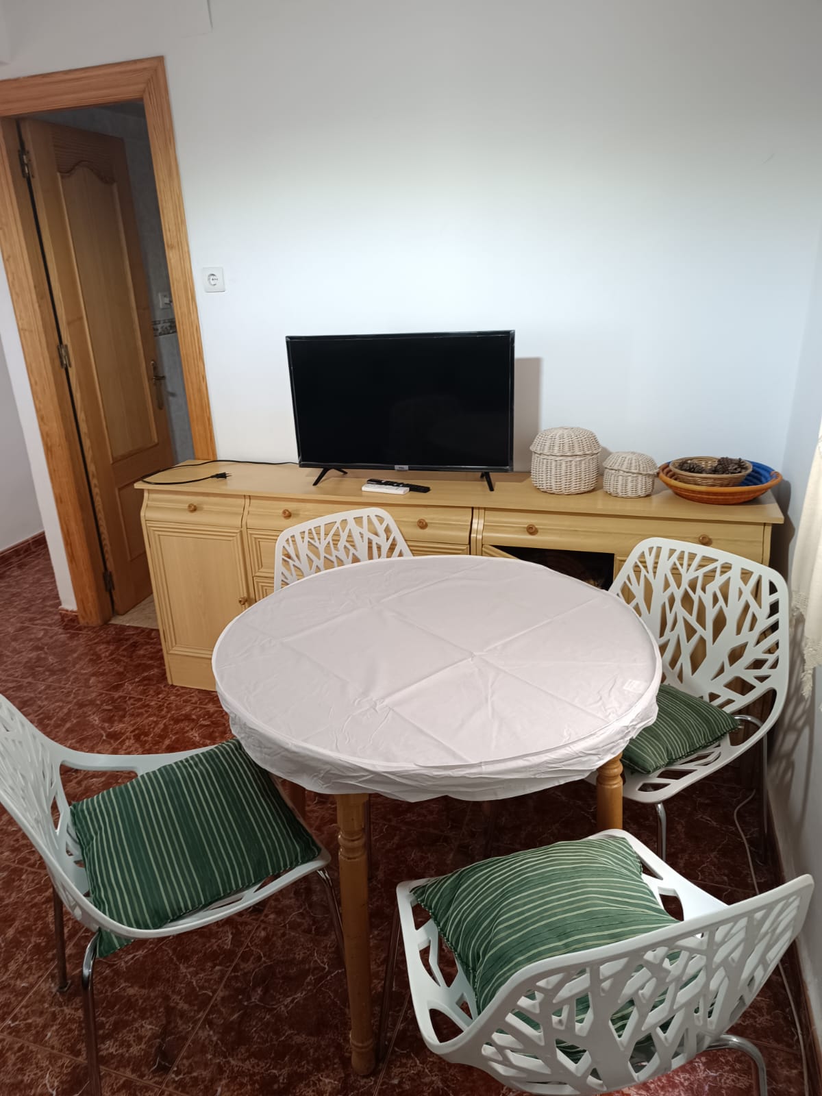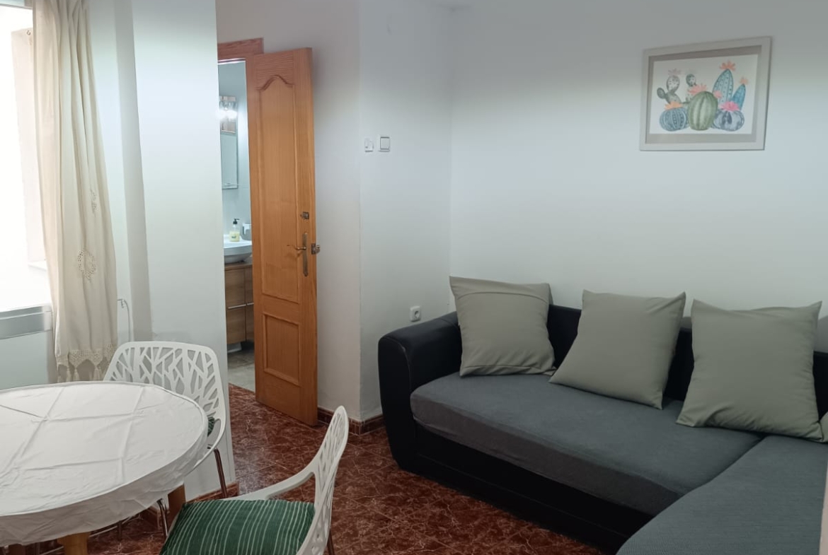 Para 6 personas, piso muy cerca de la playa, en 1 planta SIN ascensor, WIFI, AIRE portátil, de 3 dormitorios, camas de 135cm, 105cm y 90cm y ventiladores, cocina independiente, salón con sofa cama y baño.