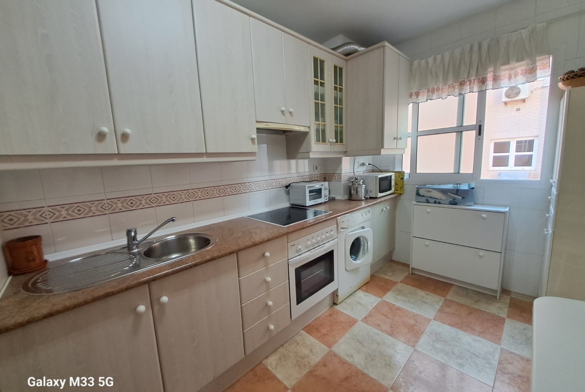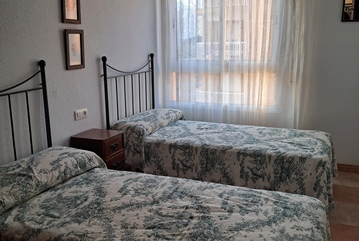 Piso en 3 planta CON ascensor, a 100 metros del mar, de 3 dormitorios, 2 camas de 135 cm, baño, aseo, cocina independiente y amplio salón.